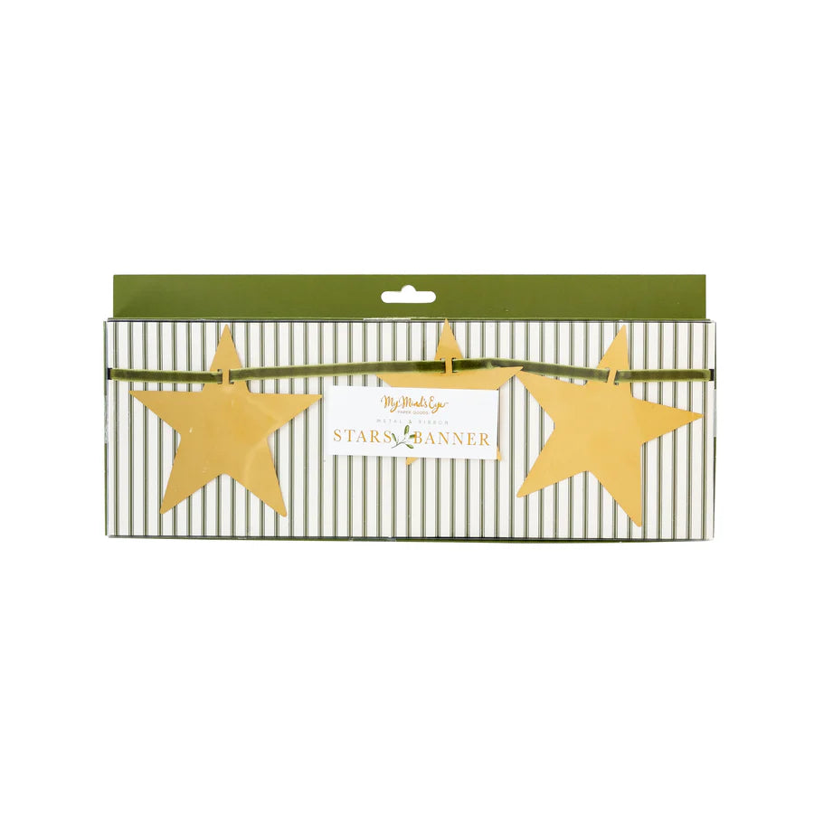 Make a starry statement this Christmas with this star banner. Perfect for everyday holiday decor, or as a festive accent piece at your holiday party, this banner features metal stars with shimmery gold that will a touch of traditional Christmas shine to your home this holiday season.