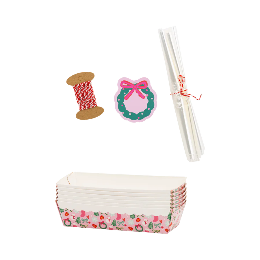 Bake up some holiday cheer with our Loaf Pan Set! These foil pans feature festive Christmas icons, making them perfect for all your holiday baking needs. Get ready to spread some joy (and cookies) with this cute set.