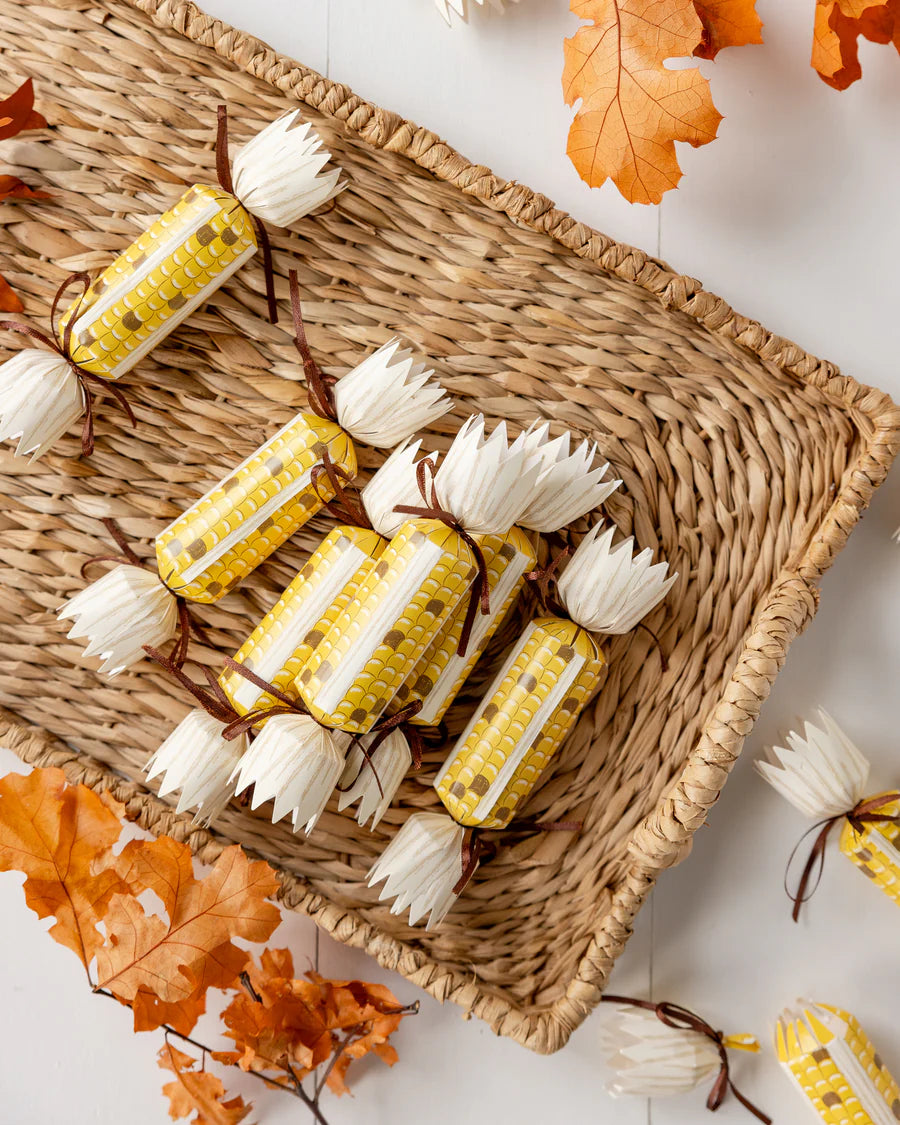 Make your Thanksgiving table pop with our corn crackers! These corn-themed party crackers add a festive touch to any gathering. Perfect for adding a little fun to your table decor, these crackers are sure to be a hit with all your guests.