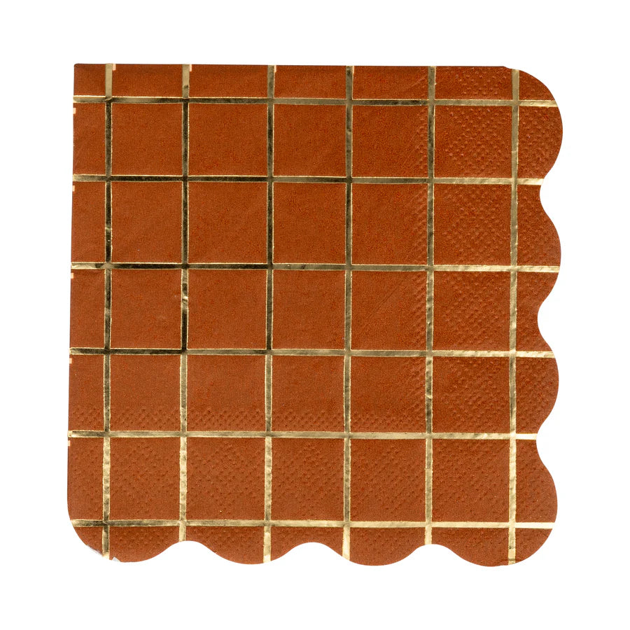 Add a touch of elegance to your harvest tabletop with these Foil Grid Cocktail Napkins. Their shimmering grid design brings festive elegance to any party setting, perfect for elevating your seasonal gatherings with style and convenience.